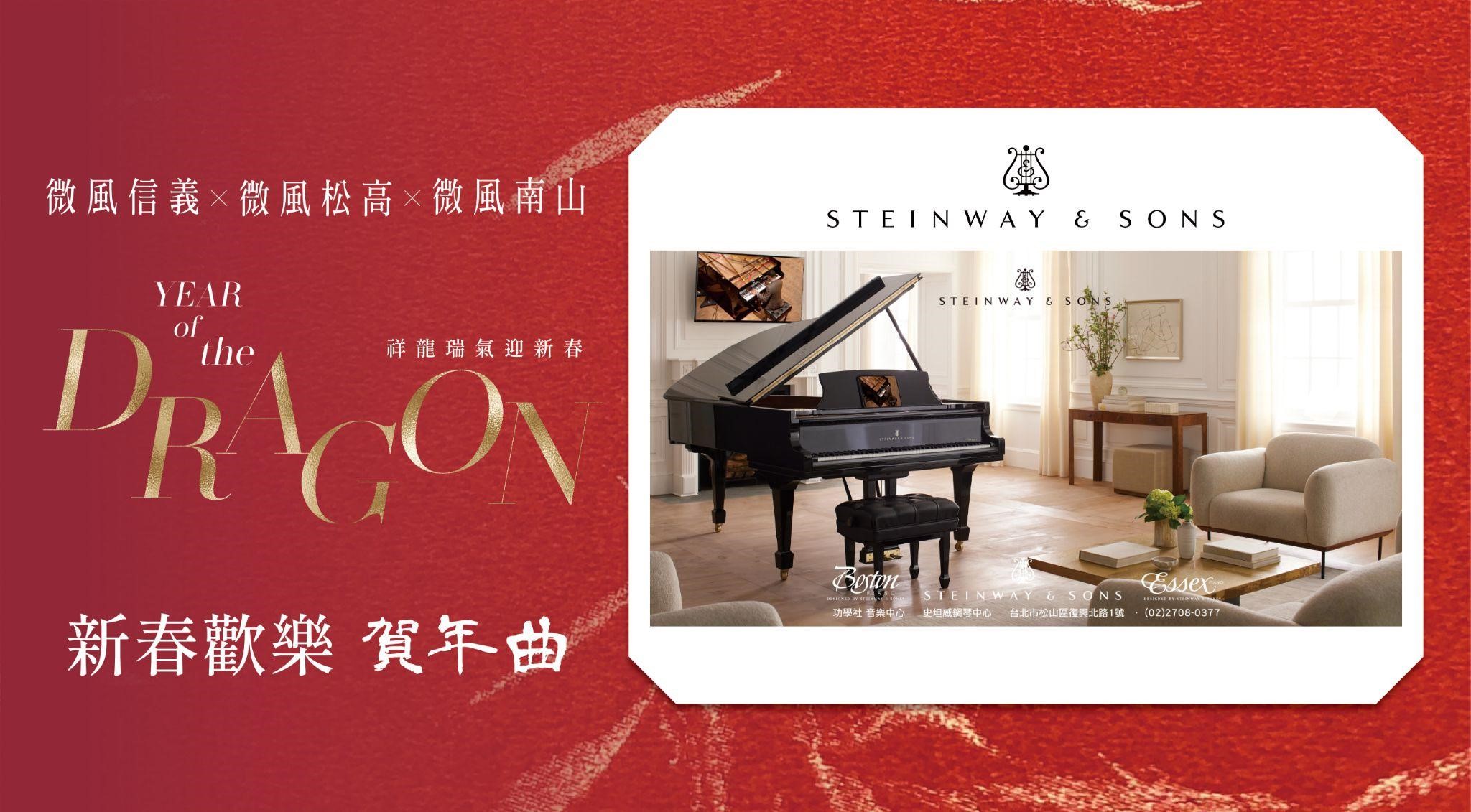 活動內容|為增新春年節歡樂氛圍,今年我們榮幸邀請到世界頂級鋼琴品牌「Steinway & Sons 史坦威」以及國際知名鋼琴家共同合作,為我們帶來最震撼的視覺聽覺饗宴,開啟2024春節新氣象!