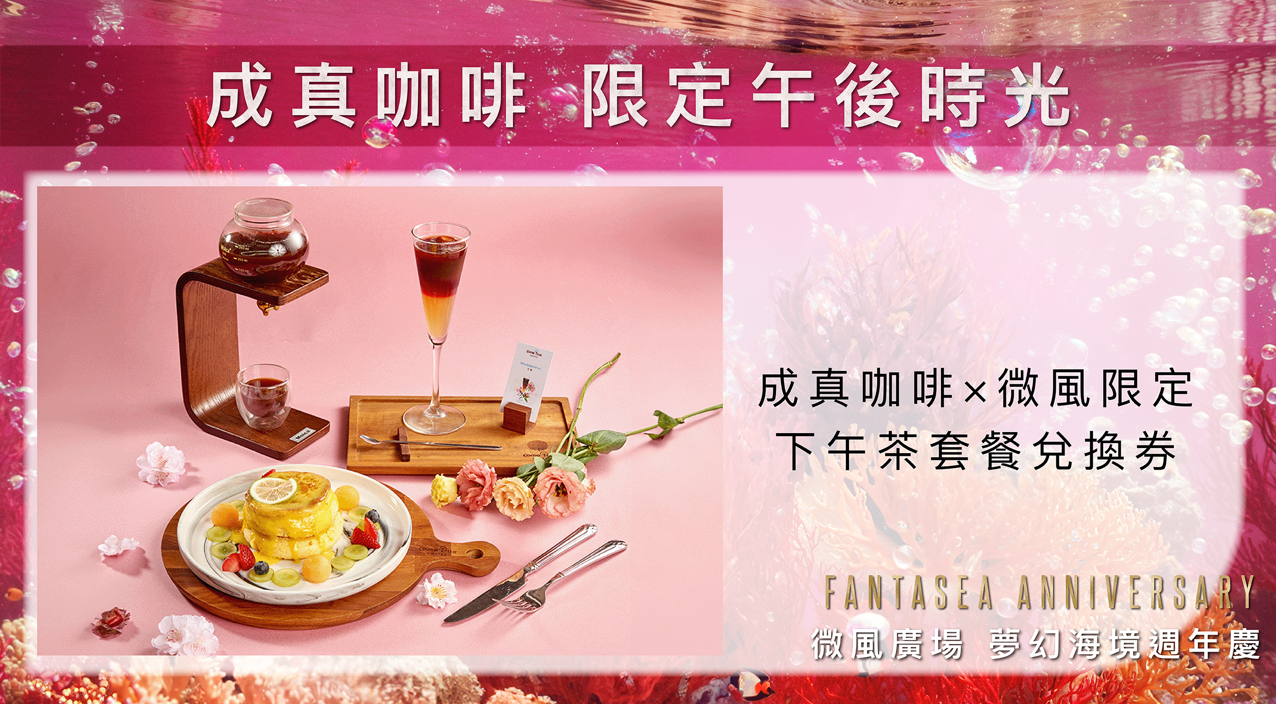 憑微風積點禮遇會員資格,於活動期間內全館單筆消費滿12,000元,即可兌換「成真咖啡X微風限定下午茶套餐」兌換券乙張。