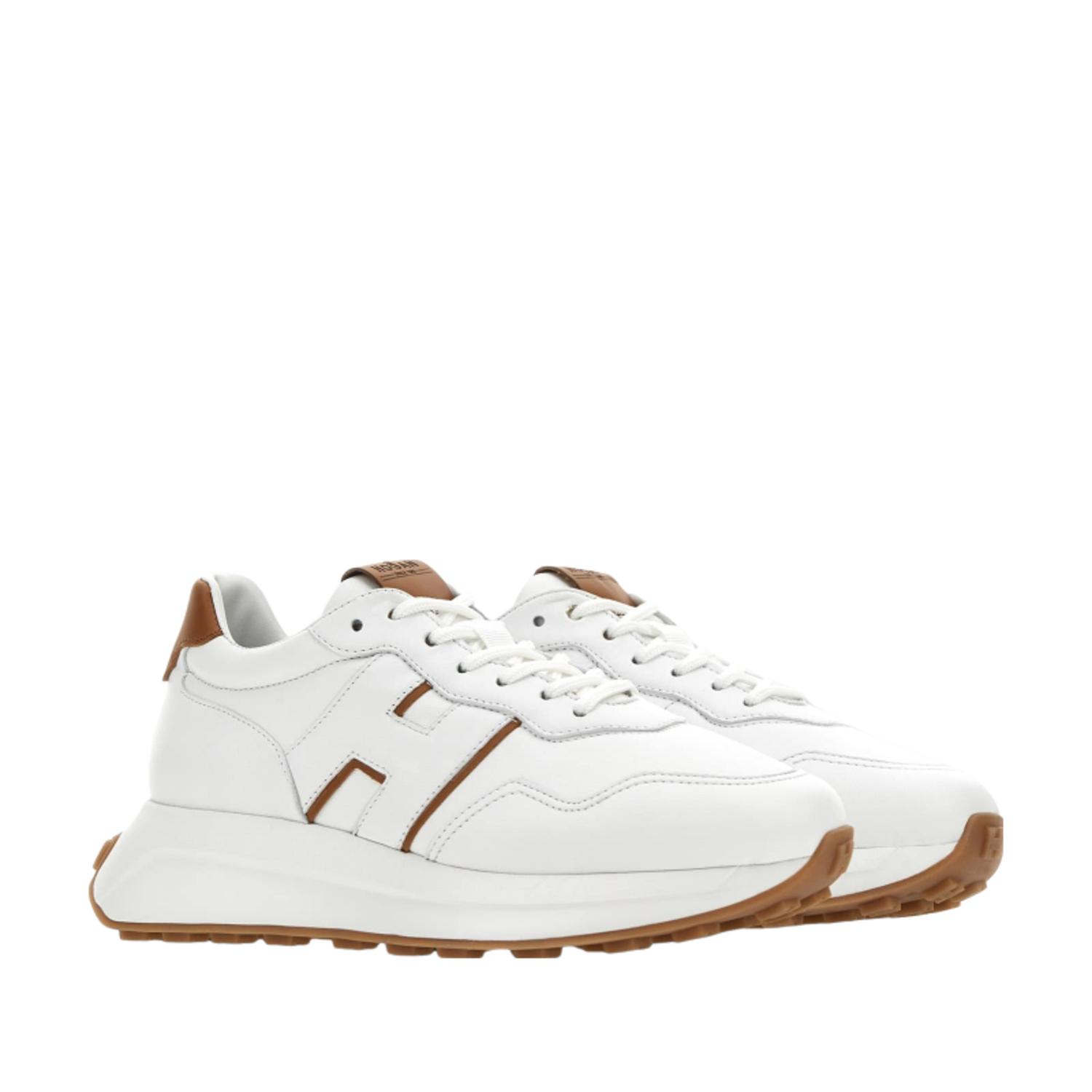 HOGAN H641 女士休閒鞋 ( 白色+焦糖棕 )