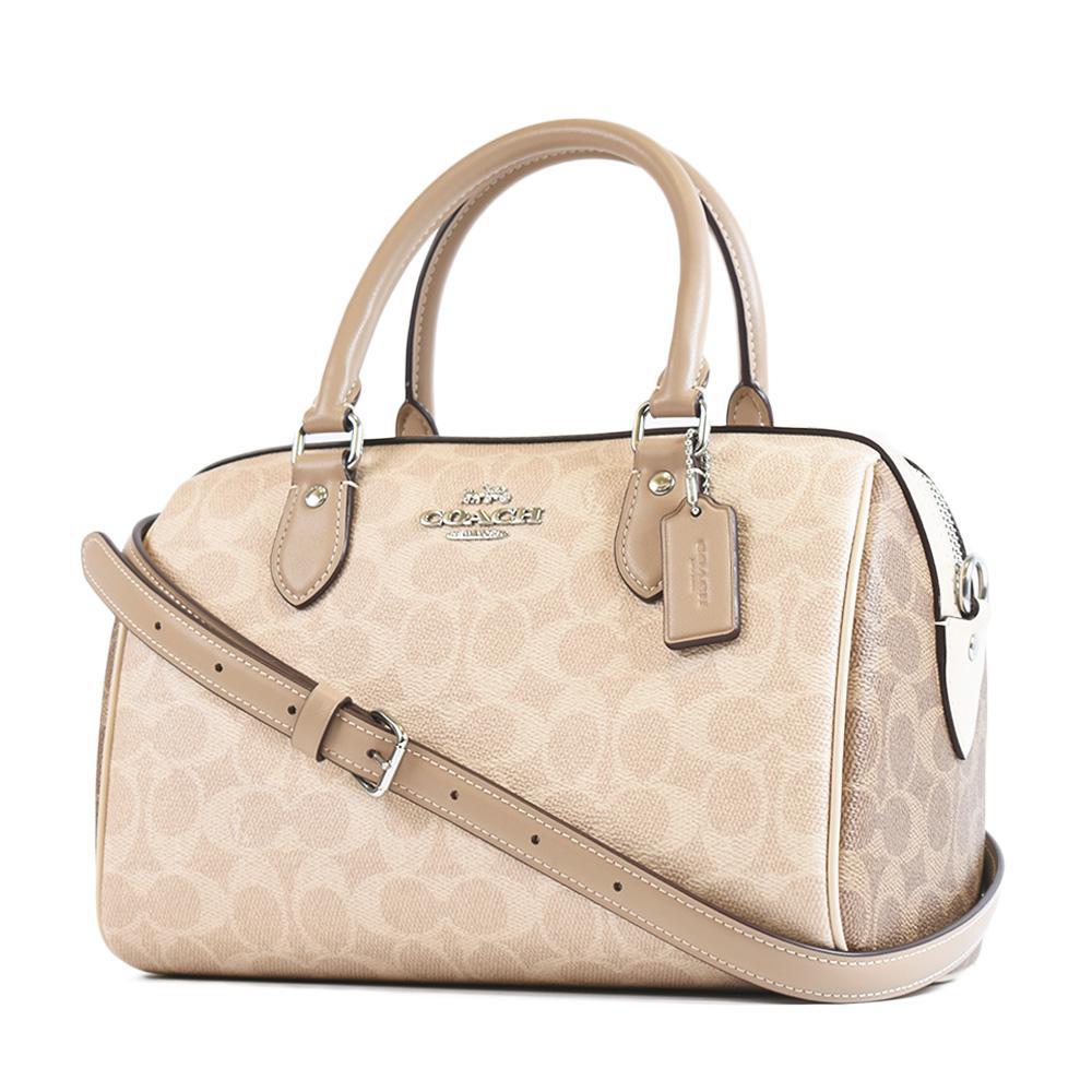 COACH 配色小 C 防刮皮革手提 / 斜背二用波士頓包