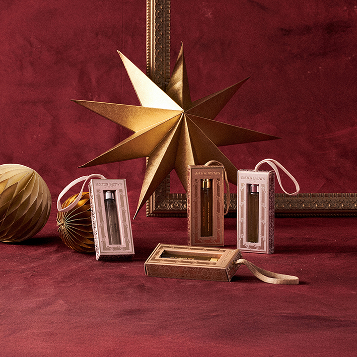 Molton Brown 將節日祝福化為兩款精緻香氛禮遇——華麗鉑金與金色聖誕拉炮中藏有香氛驚喜,或以經典、柑橘、海洋香調展開節慶旅程;同時推出可懸掛於聖誕樹上的香氛飾品,以經典香氣點亮節日氛圍,為聖誕與新年獻上最迷人的英倫祝福。